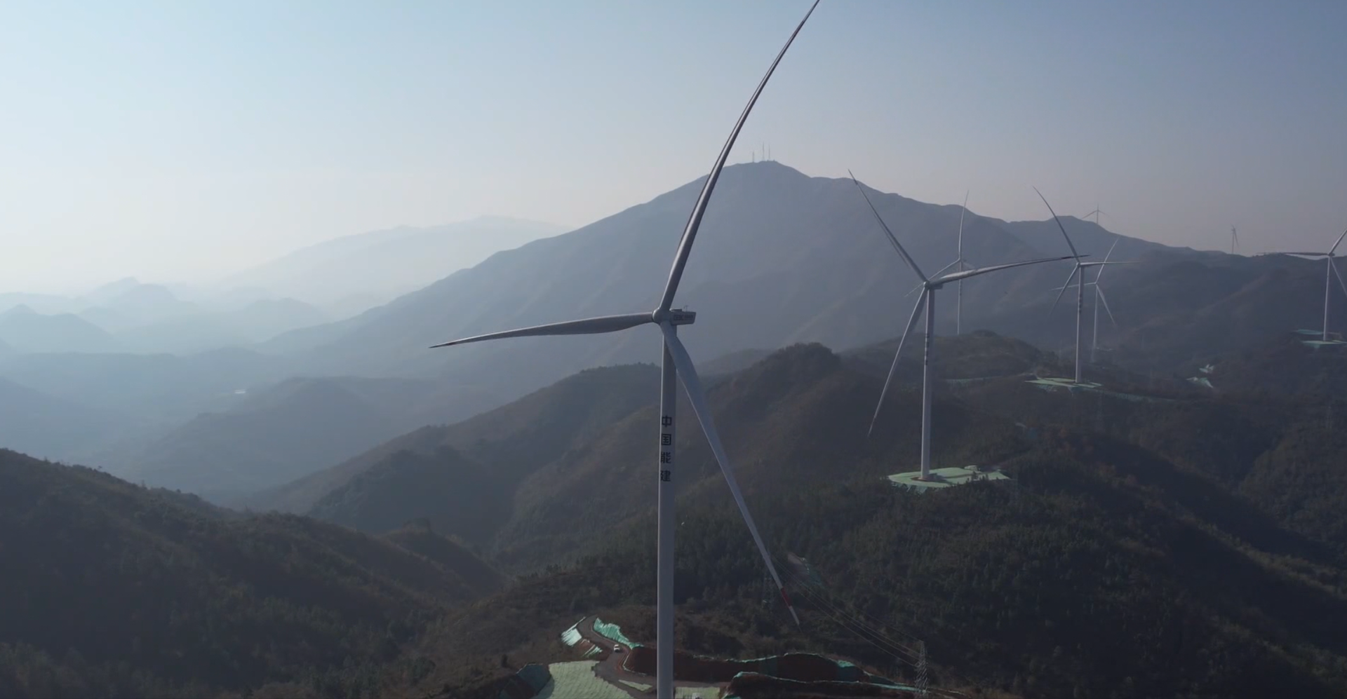 群山连绵之间,银白色的风电机组擎天而立,巨大的叶片迎风转动,源源不断地将风能转化为电能。江永县山井湾风电场项目总投资7.19亿元,总装机容量100兆瓦,共安装10台5兆瓦及8台6.25兆瓦风电机组,仅用9个月就完成全部18台机组的安装调试,创下湘南地区风电建设新速度。项目投产后,年可输送清洁电力1.823亿千瓦时,能满足30万户家庭全年用电需求,每年还可减少二氧化碳排放约15万吨。