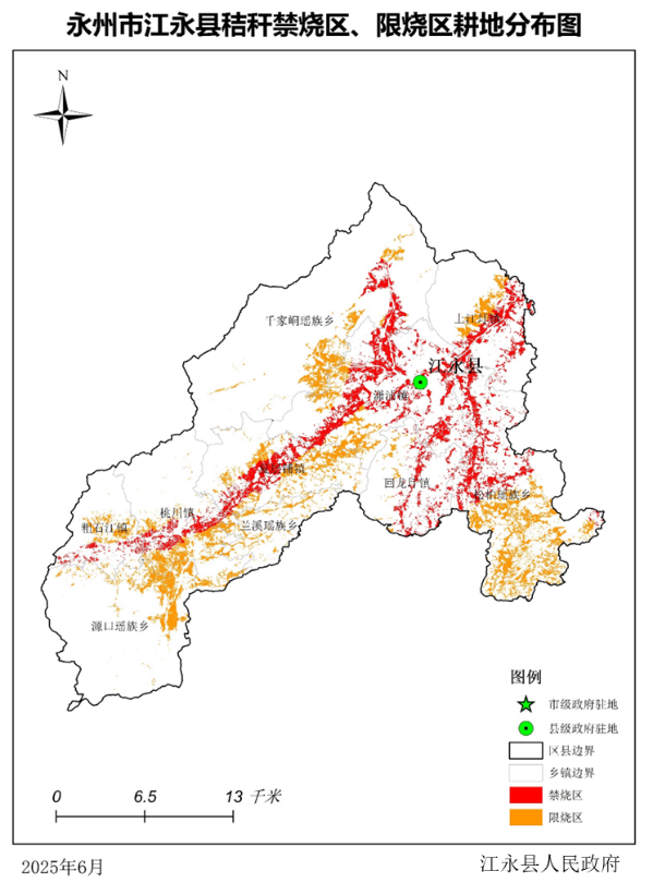 江永县人民政府关于划定秸秆禁烧区及限烧区的通告 江永政发〔2025〕5号JYDR—2025—00002................(1)
