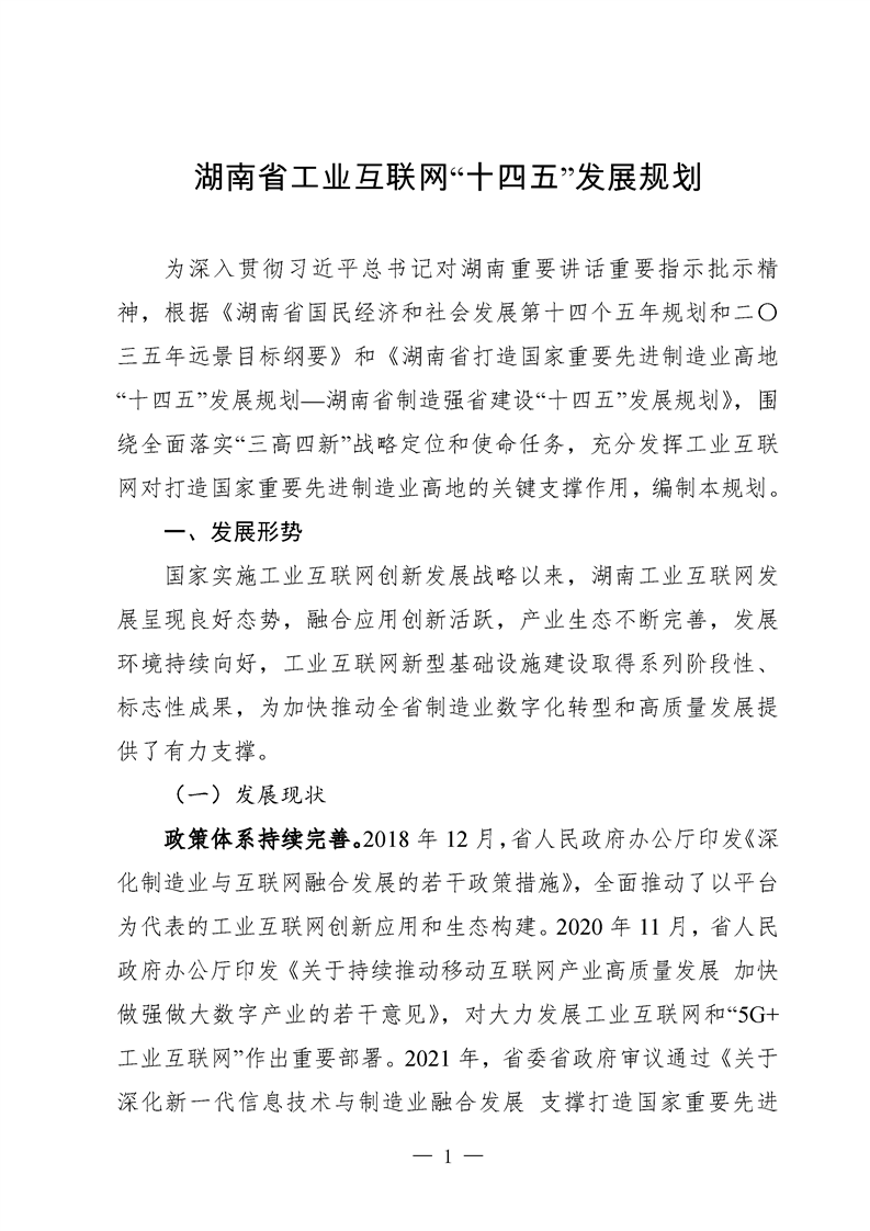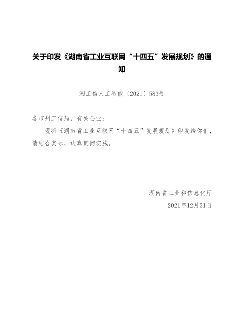 关于印发《湖南省工业互联网“十四五”发展规划》的通知(转)