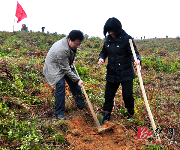 本网讯(通讯员 首积亮 谭金旺)2月2日,道贺高速公路江永段入口处的荒山上,江永县1400多名干部群众挥锄挖坑,冒着冷风细雨,种下了3万多株国外松,以实际行动支持绿色江永建设。自2011年绿色建设活动启动以来,该县林业建设共投入1576万元,安排各类造林绿化苗木960万株,完成义务植树61万株,完成造林绿化面积3.098万亩,林业总产值达到6亿元,绿色建设工作取得明显成效。