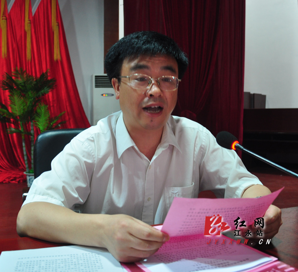 会议由县委副书记、县长唐满平主持,县委副书记张建坤宣读县委《关于表彰全县创先争优先进基层党组织、优秀共产党员的决定》,县委常委、组织部长杨健宣读县委《关于向党内关怀帮助基金捐款的倡议书》,县委书记陈景茂在会上作重要讲话。