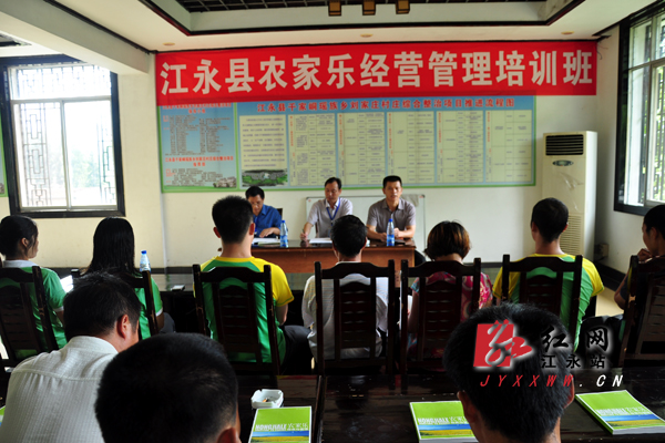 本网讯(记者 任泽旺)7月16日,县旅游、人社、药监、安监等部门在千家峒瑶族乡龙潭山庄,联合对刘家庄村10家农家乐的30余名经营管理者、从业人员开展农家乐经营管理培训。县委副书记张建坤,县委常委、宣传部长卢文庆,县正处级干部何斌到场指导。培训班将着重提升受训者的烹调技能、礼仪素质以及食品卫生、安全管理等知识,促进该村农家乐科学、规范和健康发展。