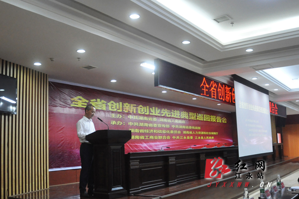 报告会上,与会的领导干部通过观看VCR、聆听报告等,深入了解了湖南千山制药机械股份有限公司董事长刘祥华、湖南果秀食品有限公司董事长阳国秀、湖南维格磁流体股份有限公司董事长言继春、衡阳海联进出口有限公司董事长周游、湖南大诚中药生物股份有限公司董事长廖丽萍、郴州市三合乔龙生态农业有限公司总经理王硕丰等6名成功企业家创业的艰辛历程和宝贵心得,会场上不时响起热烈的掌声。