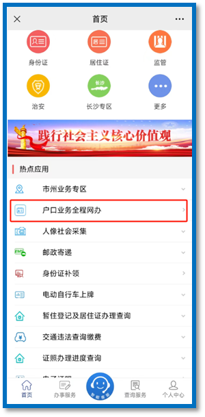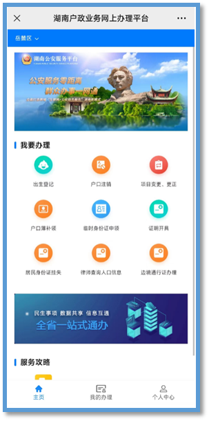 进入湖南户政业务网上办理平台,