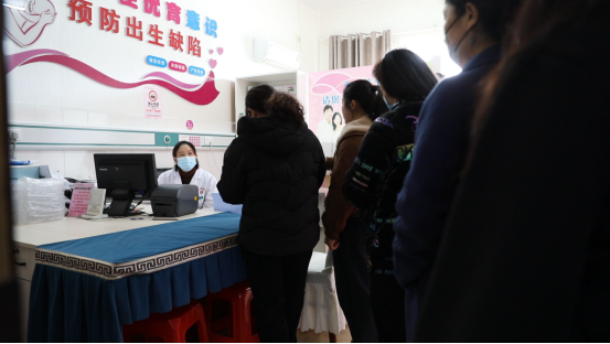 在县妇幼保健院筛查现场,前来咨询登记的妇女在工作人员引导下有序排队。免费“两癌”筛查包括阴道分泌物检查、HPV初筛、乳腺彩超、乳腺触诊等项目,且本次筛查需同时完成宫颈癌和乳腺癌两项检查,已进行全面健康评估。