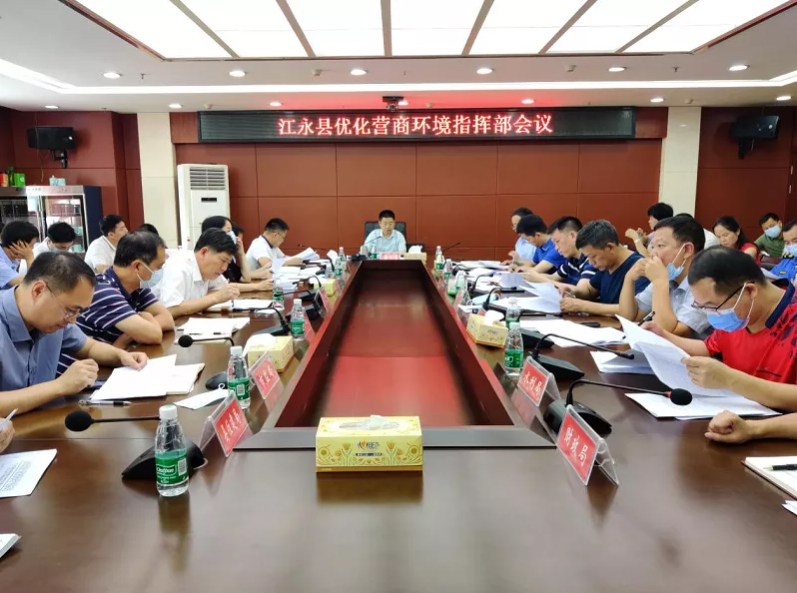 9月3日,江永县召开优化营商环境指挥部会议,县委书记唐德荣主持会议,县领导廖树清、邬双飞、廖小红、陈小明、陈江平出席会议,全县9个乡镇、部分县直相关单位主要负责人、优化营商环境指挥部全体成员参加会议。