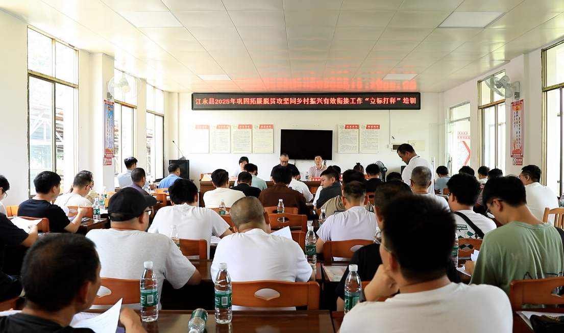 9月19日,江永县2025年乡村振兴有效衔接工作“立标打样”现场培训会在潇浦镇何家湾村活动中心正式启动。县委副书记李林主持会议。相关县直行业部门分管领导及专干、各乡镇分管领导及专干等参加会议。