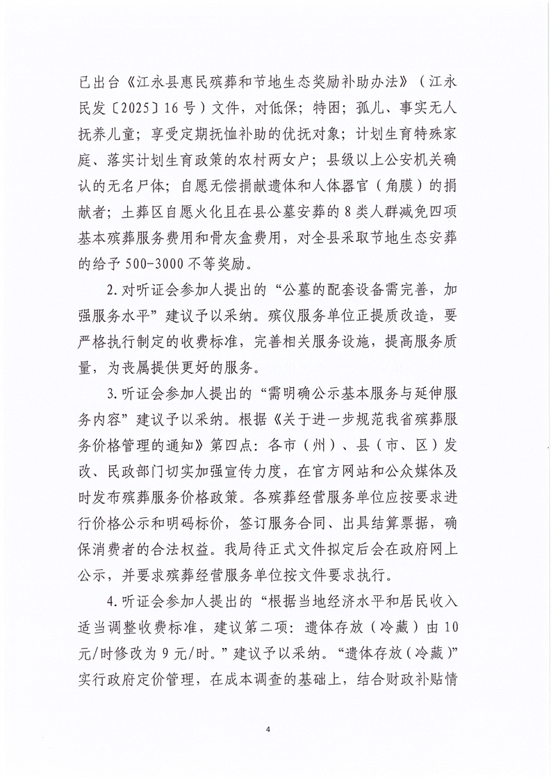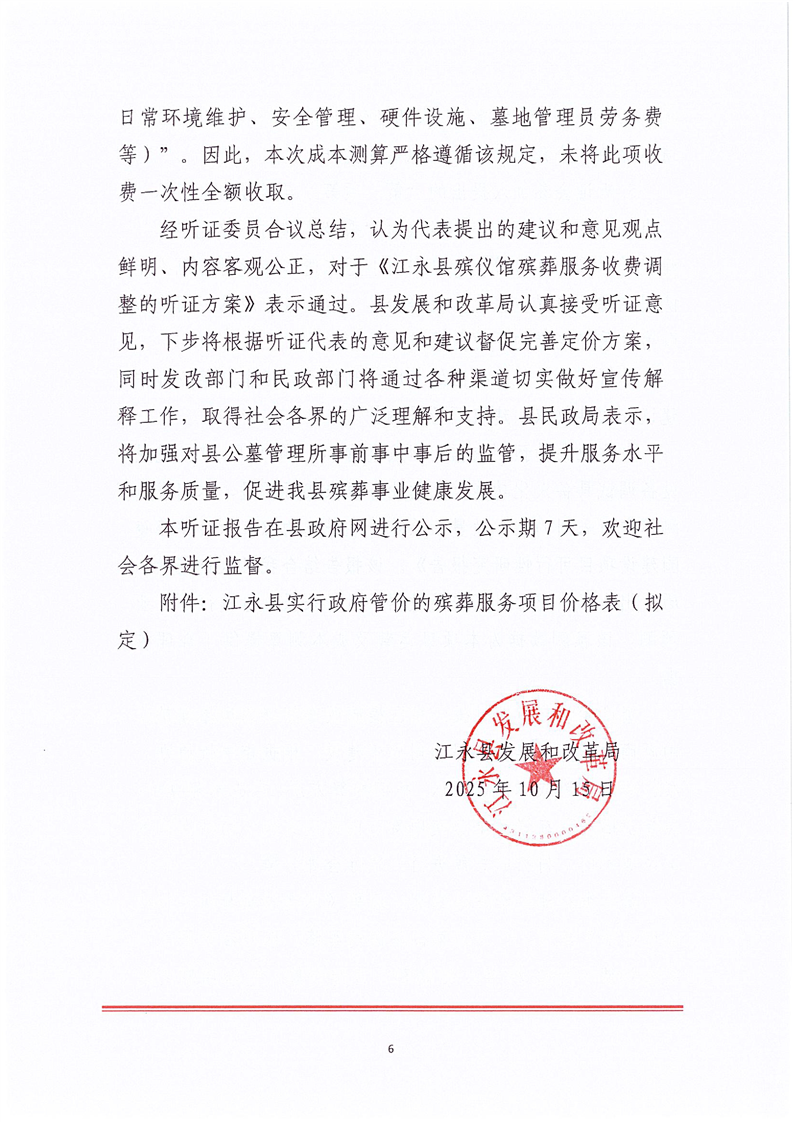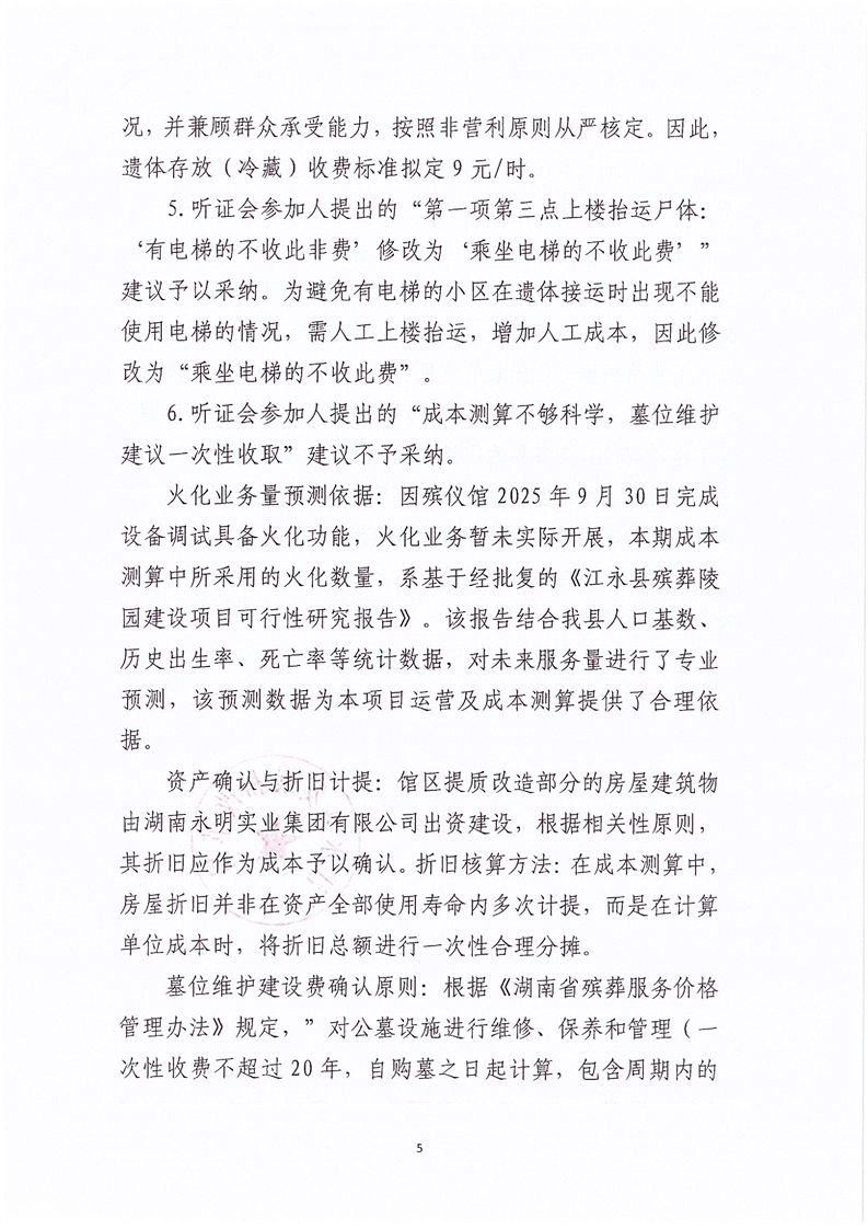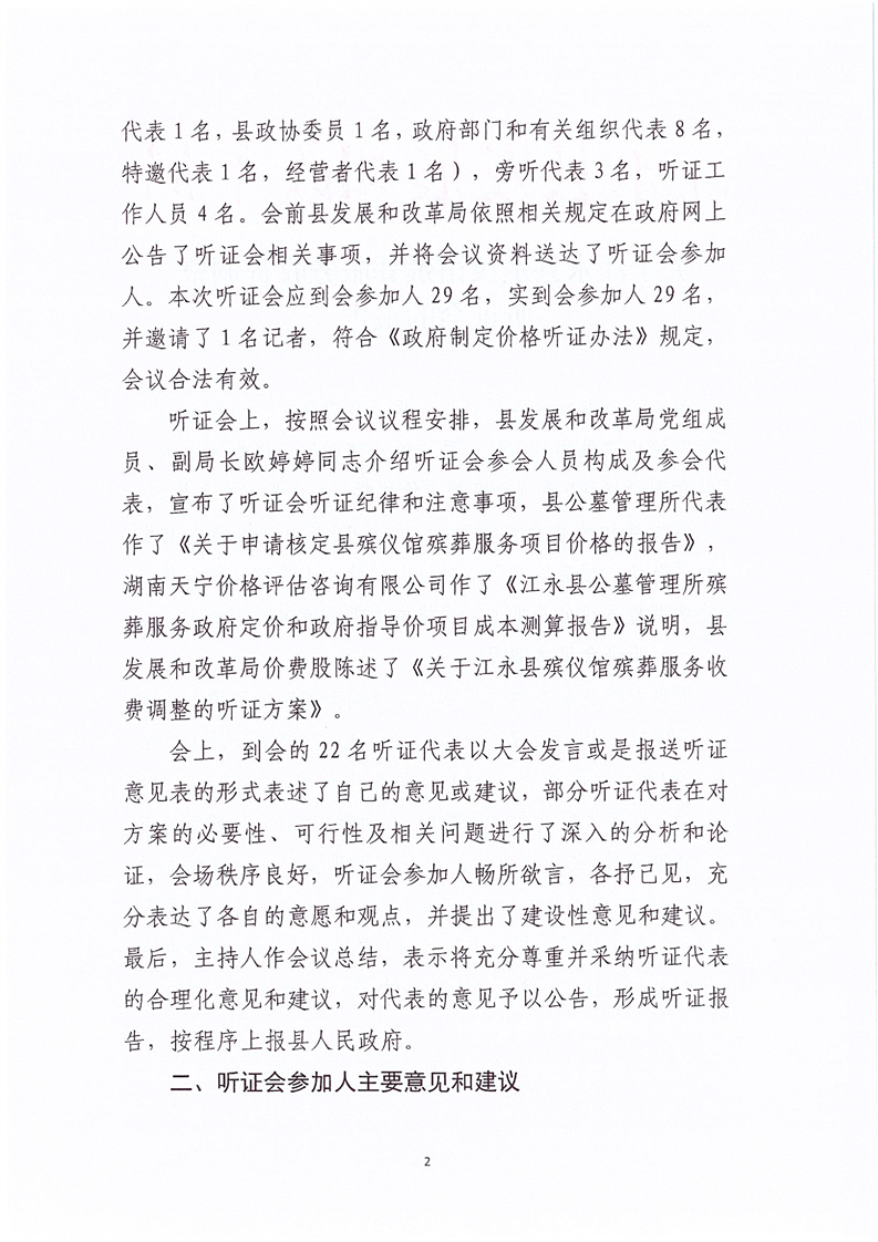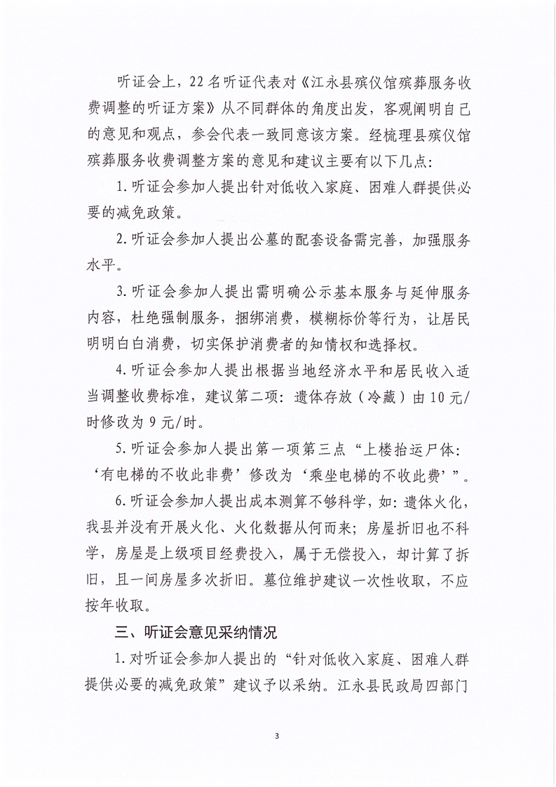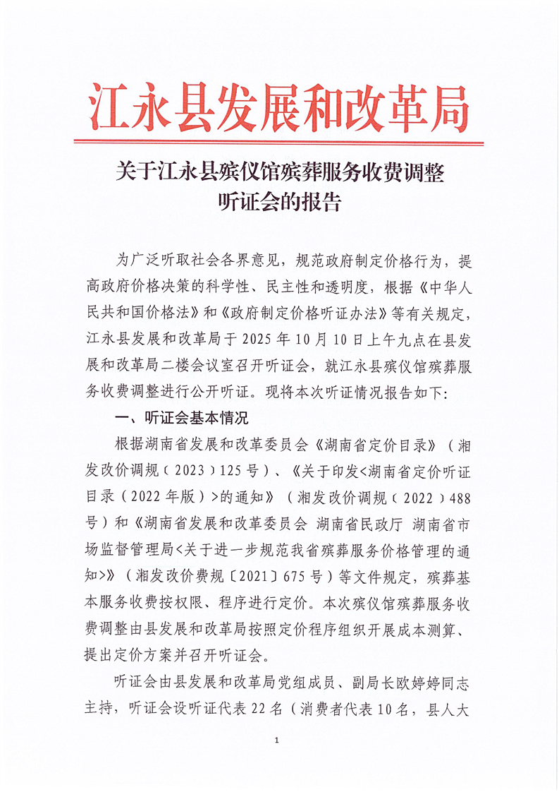 关于江永县殡仪馆殡葬服务收费调整听证会的报告