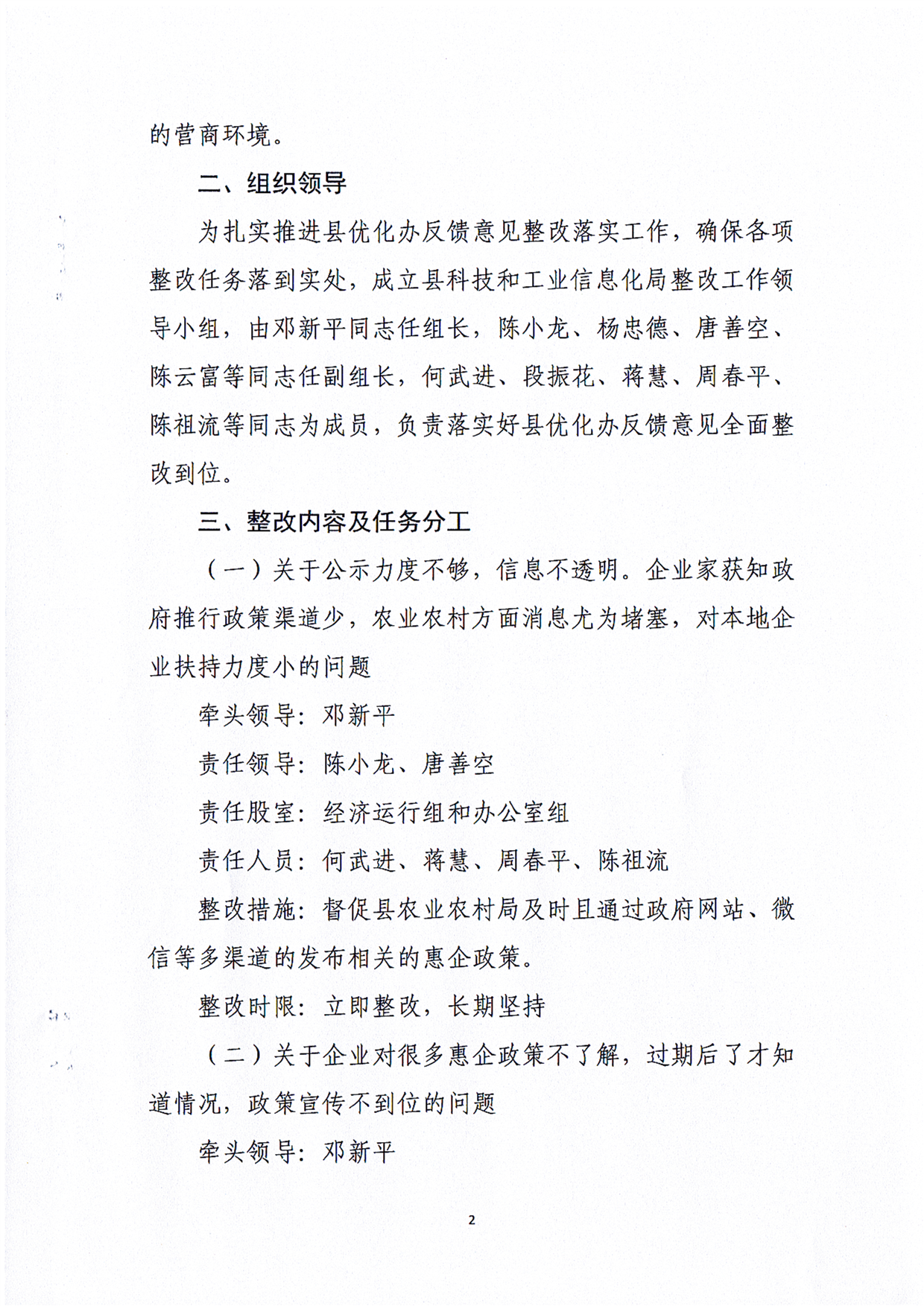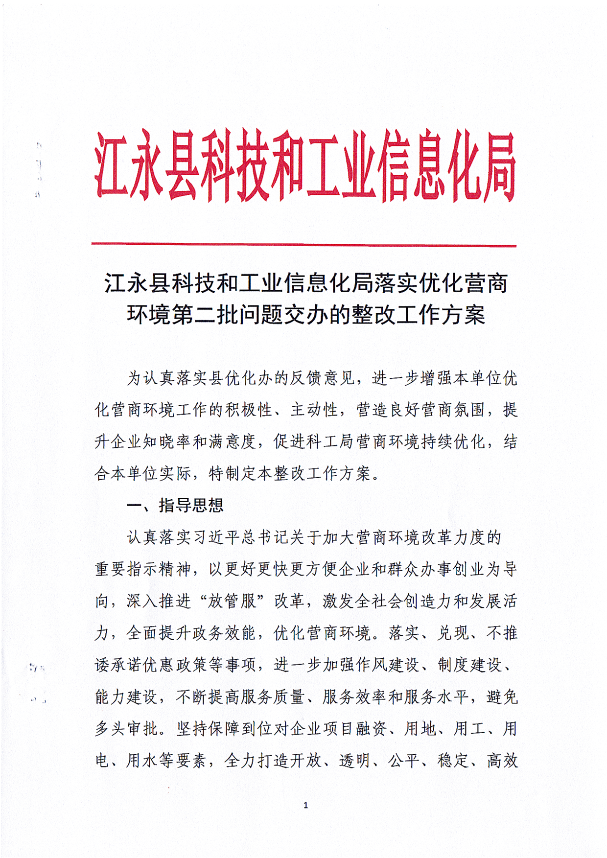 江永县科技和工业信息化局工作落实优化营商环境第二批问题交办函的整改方案