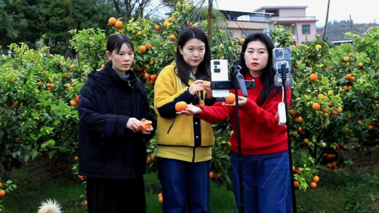 随后,记者们前往管家村,这里也是此次助农直播的暖心一站。此前,刘女士家中沃柑遇到销售难的问题,抱着试一试的心态在网上向江苏电视台记者求助,得知情况后,江苏电视台第一时间联动永州电视台,将刘女士的沃柑基地纳入此次直播助农行程。走进果园,金灿灿的沃柑挂满枝头,果香四溢,刘女士热情地带着记者们穿梭在果树间。记者们一边帮刘女士推介沃柑,一边向网友讲述背后的助农故事,暖心的情节和优质的果品让网友纷纷下单,为这份爱心与美味买单。
