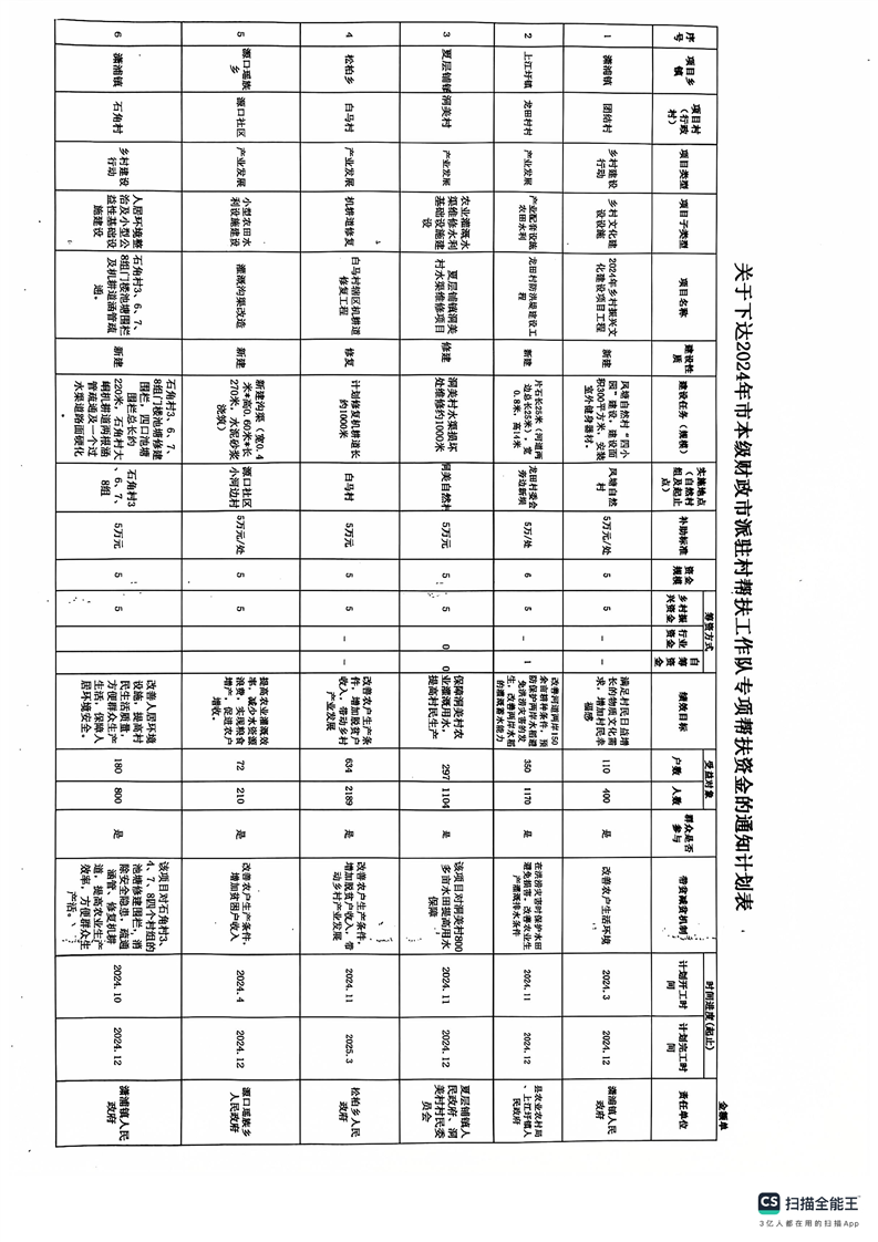 关于下达2024年市本级财政市派驻村帮扶工作队专项帮扶资金的通知计划表