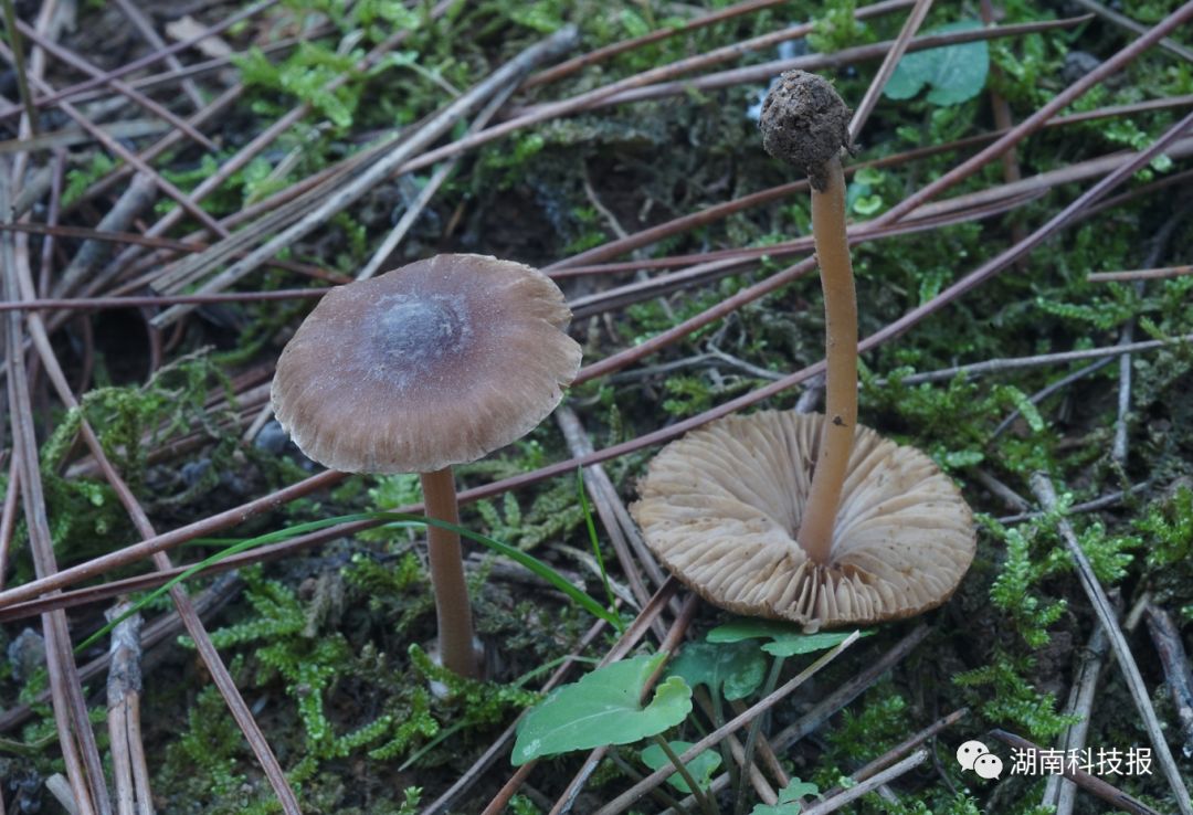主要特征:菌盖直径1~3厘米,半球形,光滑,灰褐色至暗褐色。菌褶直生,灰褐色至深紫褐色。菌柄长4~6厘米,粗0.1~0.3厘米,灰色至灰褐色,中空。