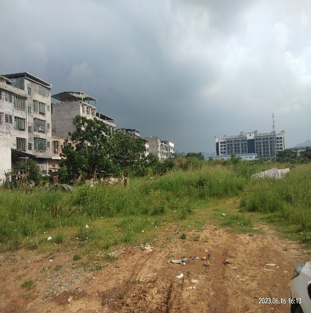 2023年: 以菜地用地和城镇居住地为主,有少量鱼塘,从事农业种植活动,地块南侧区域进行房地产开发建设,多栋建筑物已完工。