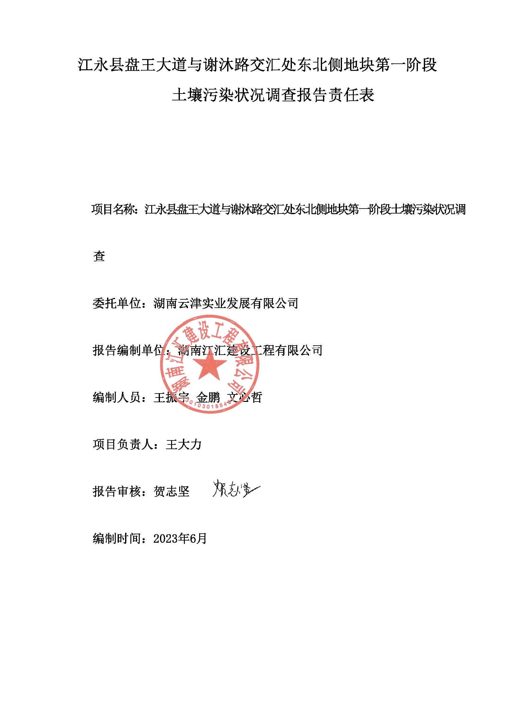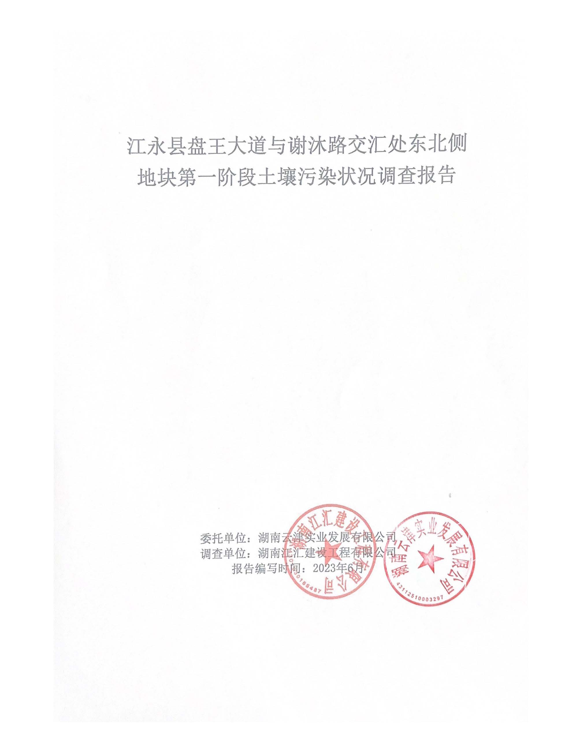 我司依据《中华人民共和国土壤污染防治法》、《土壤污染防治行动计划》、《关于贯彻落实土壤污染防治法、推动解决突出土壤污染问题的实施意见》(环办土壤[2019]47号)等有关法律和规定,对项目所在地进行了详细现场调查、收集了区域和项目的相关资料,通过对相关资料进行认真的分析、整理,按照有关技术规范要求,编制了《江永县盘王大道与谢沐路交汇处东北侧地块第一阶段土壤污染状况调查报告》。