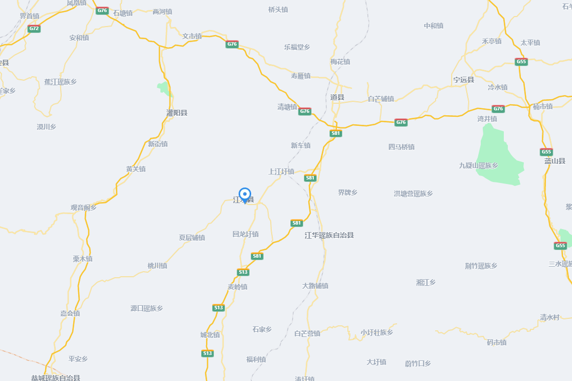 江永县位于永州市南部,都庞岭南麓,地处东经110°57′-111°32′,北纬24°55′-25°29′分之间,东邻江华瑶族自治县,南毗广西富川瑶族自治县,西接广西恭城瑶族自治县,西北与广西灌阳县相邻,北面与道县相依。