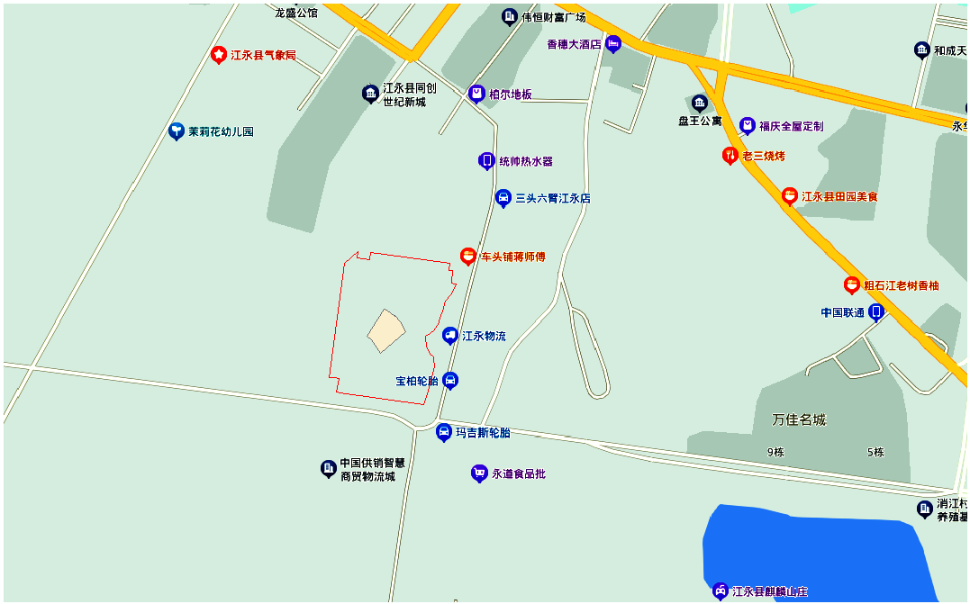 潇浦镇,位于湖南省江永县东部,为江永县政府驻地,镇政府驻江永县环城东路68号(五一路049号),东与上江圩镇、黄甲岭乡毗邻,南抵回龙圩镇,西界夏层铺镇,北靠千家峒瑶族乡,全镇总面积202.26平方千米,辖5个社区、14个行政村(2019年)。四方井社区、凤凰社区、麒麟社区、永新社区、允山社区、回岗村、枇杷井村、向光村、下界头村、何家湾村、车田村、古宅新村、石角村、塘北社区村、工业园社区村、团结村、接龙桥村、紫荆村、和兴村。地块地理位置如下图 2.2.1-1 所示。