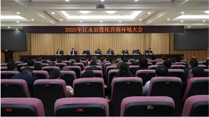11月19日,2025年江永县优化营商环境大会召开,会议以传导考核压力、找准工作短板、释放优化决心为目的,动员全县统一思想、狠抓落实,推动营商环境优化升级。县委书记唐德荣出席会议并讲话,县委副书记、代县长于思洋主持会议,李林、廖树清、廖小红、钱建洪、彭浩宸、高厚德等县领导出席。