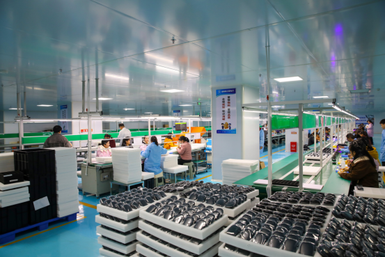 湖南格兰图电子科技有限公司总经理刘兴文介绍:“目前的话在职是有120号人,三条生产线,我们的计划前期是在今年的5月份之前完成八条线的一个生产投产,预计人员是在500-600号人,每月的月度的产能目标是完成40万套以上的一个生产交付。”