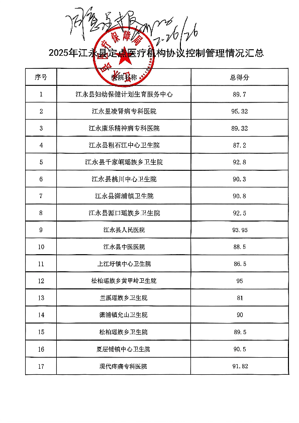 2025年江永县定点医疗机构协议控制管理情况汇总